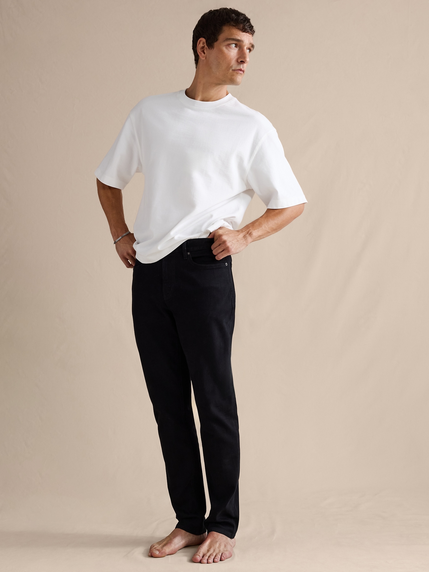 Our Luxe Traveler Jean has an extra-fine weave and is engineered with added stretch for comfort.