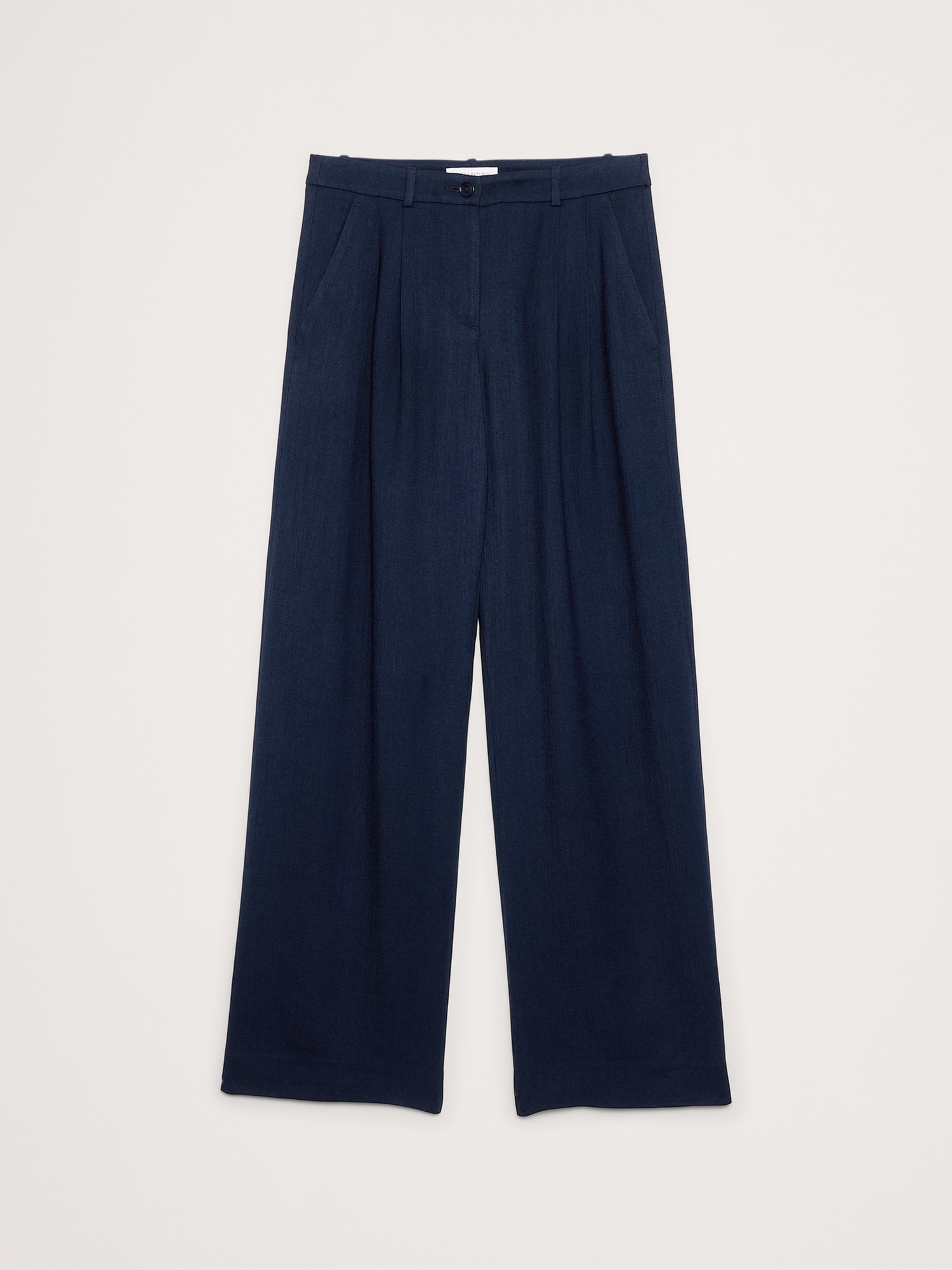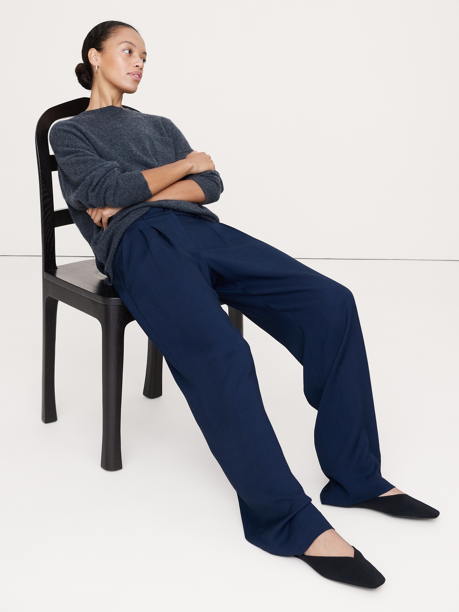 Soho Mid-Rise Pleated Wide-Leg Drapey Twill Pant