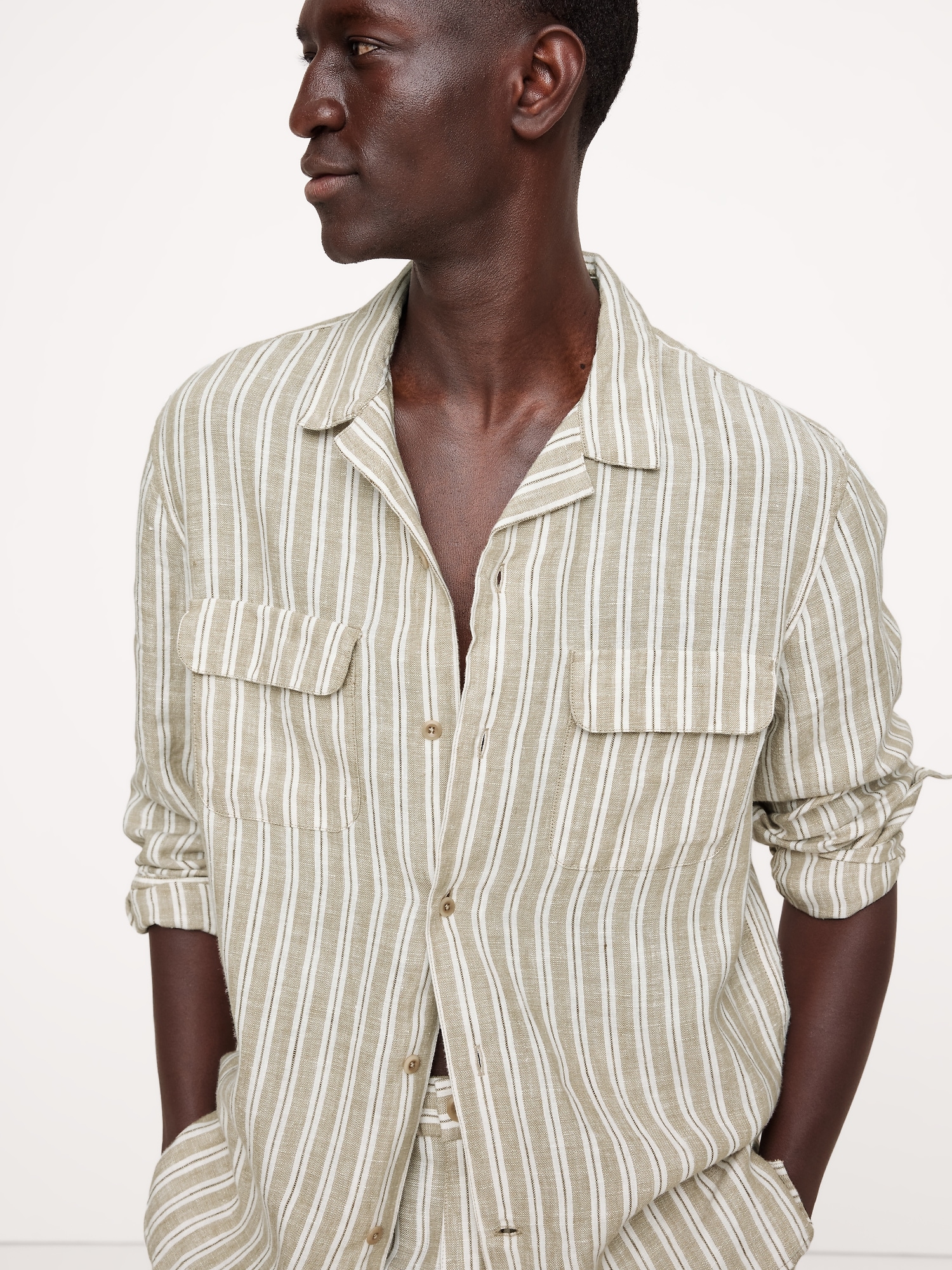 We wanted this linen resort shirt to feel like the best vintage finds so we kept the fit easy and added a garment wash for softness and lived-in color.