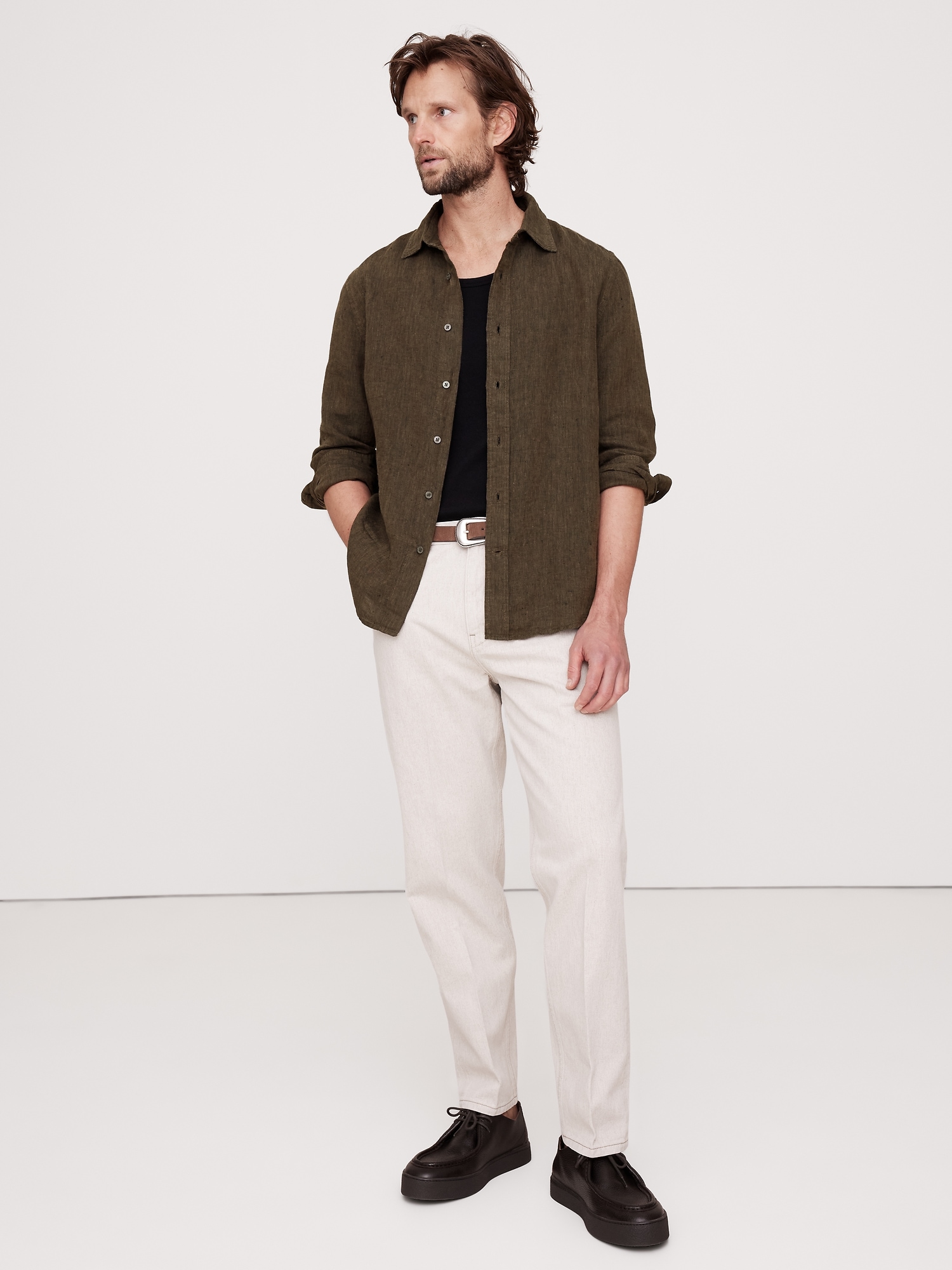 Made from 100% certified-European linen, just the way we like it. We kept the silhouette of this long-sleeve shirt easy and opted for a classic point collar.