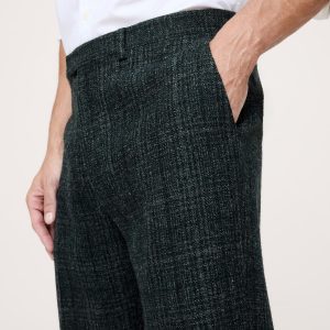 We knew we had to do something special with this Merino wool tweed from Italy, so we cut it into a straight-leg pant with a streamlined silhouette to show off this beautifully textured fabric.