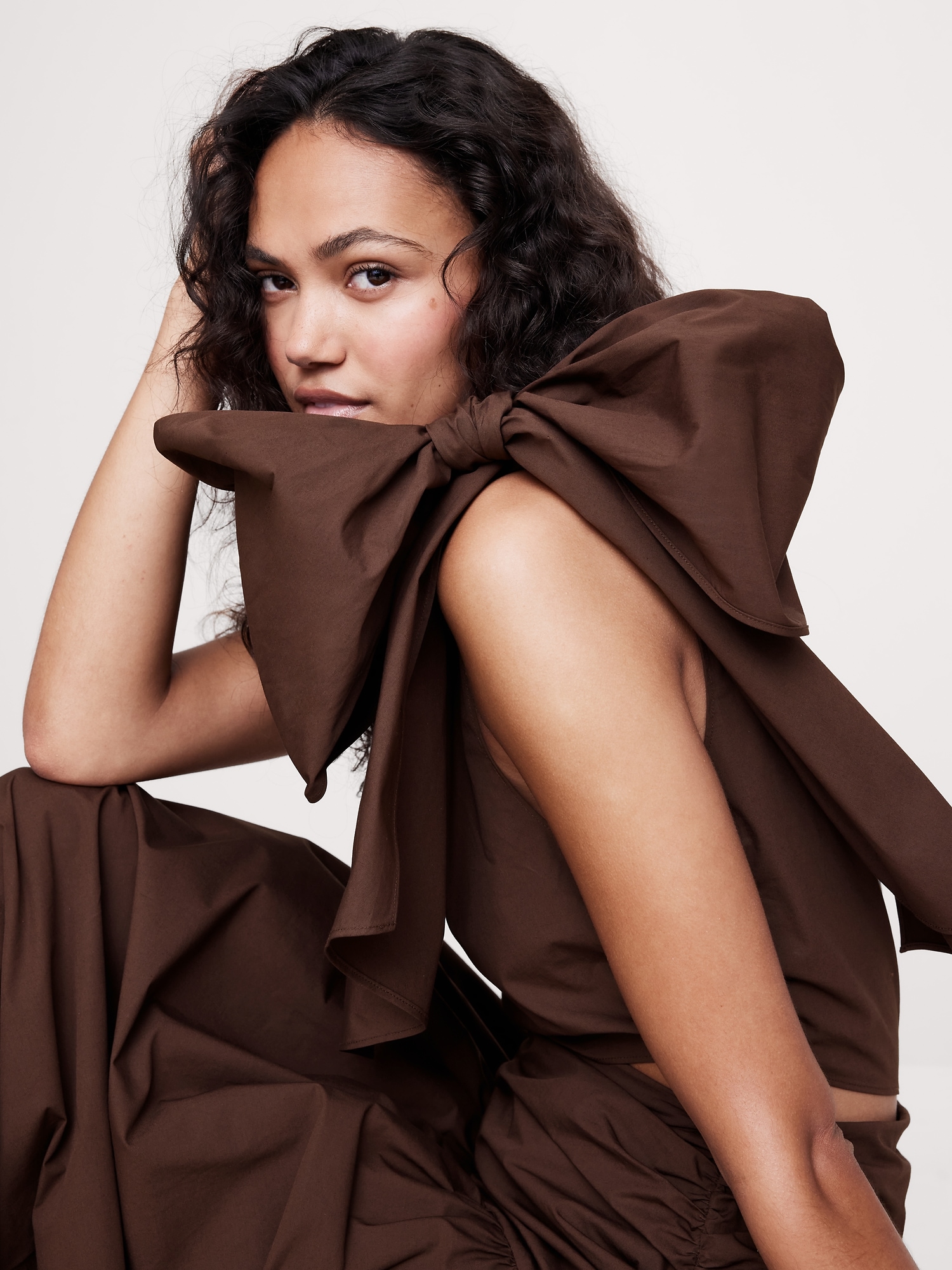 Stretch-Cotton Poplin One-Shoulder Drop-Waist Maxi Dress