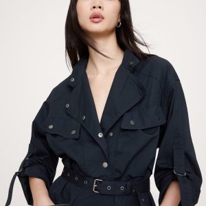 Stretch-Cotton Utility Mini Dress