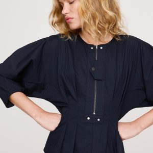 Stretch-Cotton Utility Peplum Top