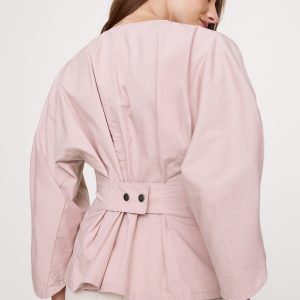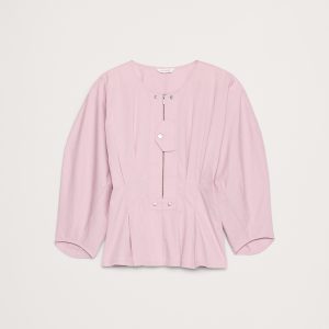 A shirt that says \”I got this\”. We reimagined utility details to create a twist on the classic button placket, seen here in a balloon-sleeve top cut from our stretch-cotton ripstop fabric, with its signature grid texture.