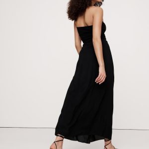 Stretch-Crepe Drape Front Maxi Skirt