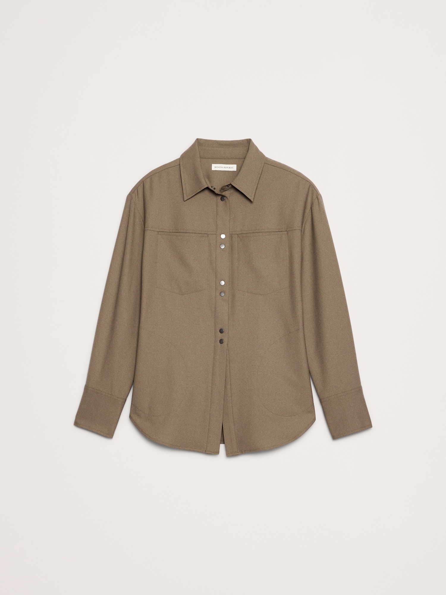 A very cool shirt. We cut this one in an oversized fit from a wool-blend flannel and added a drawstring detail at the back to define your waist.