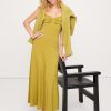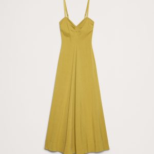 Be a little sweetheart. This stretch-sateen dress achieves its silhouette with a bias-cut construction and ruching at the bust and back waist. Plus, the ankle length looks great with heels or flats.