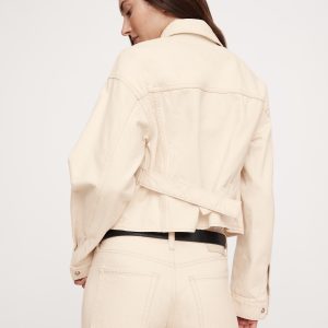 An invitation to play with proportions, this jacket borrows its silhouette from vintage trucker jackets. Our design team updated it with a belt at the back to cinch in the waist—looks great with high-rise jeans.