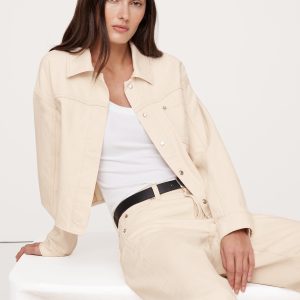 An invitation to play with proportions, this jacket borrows its silhouette from vintage trucker jackets. Our design team updated it with a belt at the back to cinch in the waist—looks great with high-rise jeans.