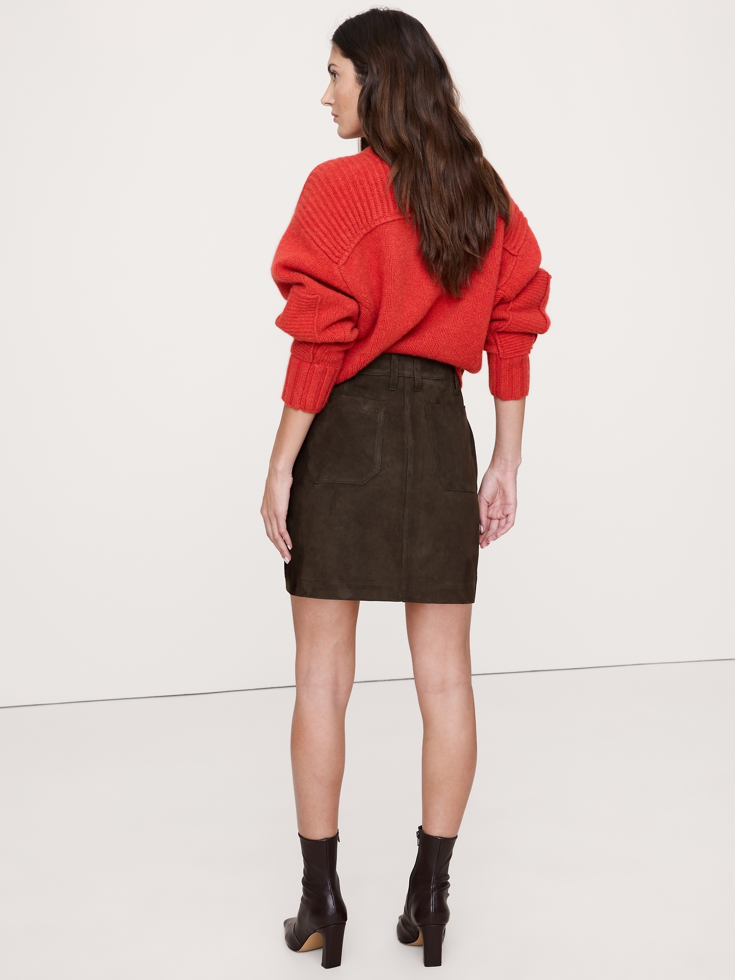 A luxurious take on a utilitarian silhouette, we cut this mini skirt is beautiful and soft goat suede with paneled, utility pocket details.