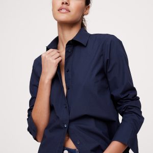 Our Design team’s favorite shirt. We perfected the fit of this shirt so it’s relaxed, but never sloppy. Crafted in 100% cotton poplin and specially washed for already-loved softness. Everyday Fit: Fitted shoulders, relaxed through the chest and waist. Point collar. Troca shell button front. Curved hem. #709387