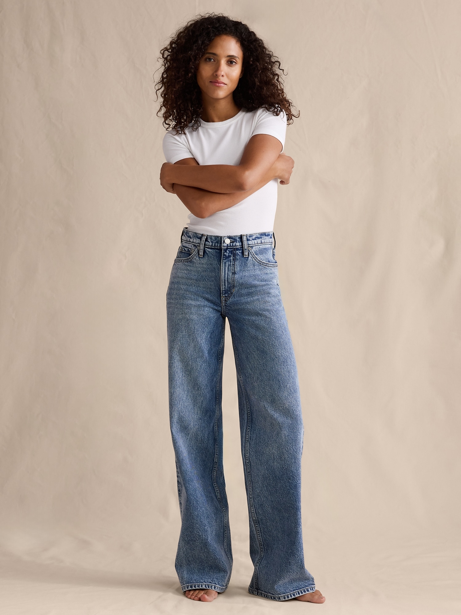 Our Icon Wide-Leg jean has a leg-lengthening silhouette that’s fitted at the waist and hips. Crafted in comfort-stretch denim woven from cotton and super-soft TENCEL™ lyocell.