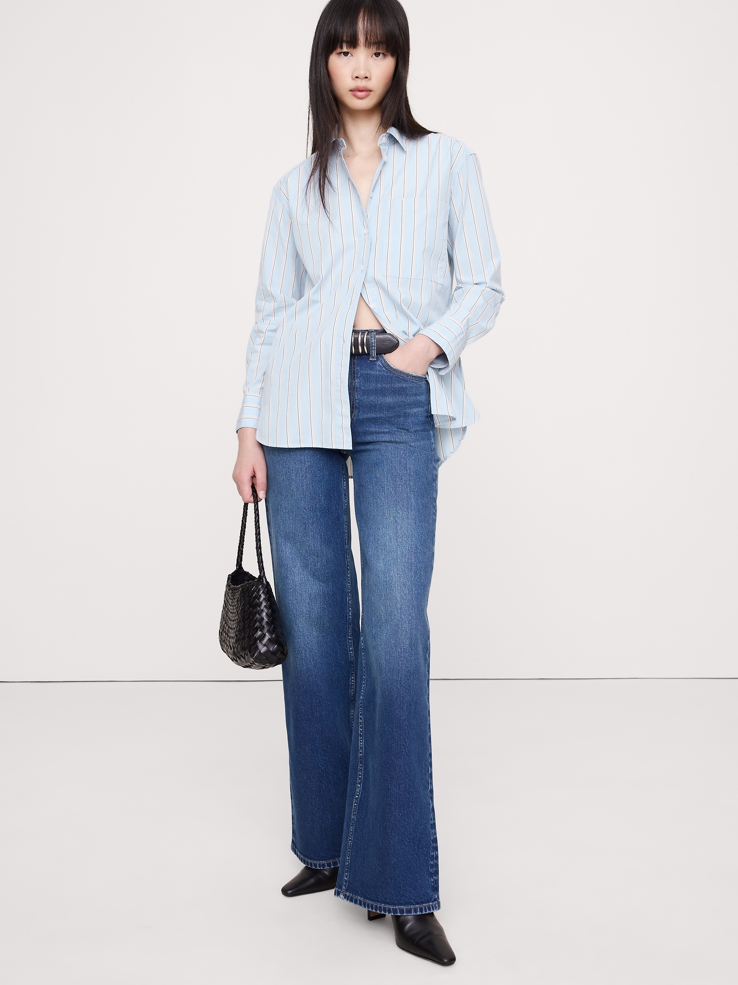 Back and better than ever. We updated the fit on our best-selling Oversized Shirt by taking it in slightly at the shoulders, waist and sleeves to create the ideal, effortless button-down top in premium 100% cotton poplin.