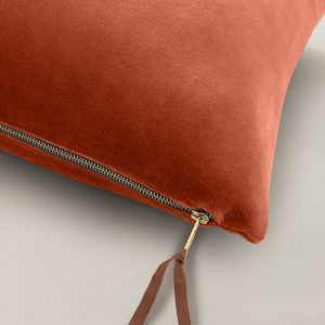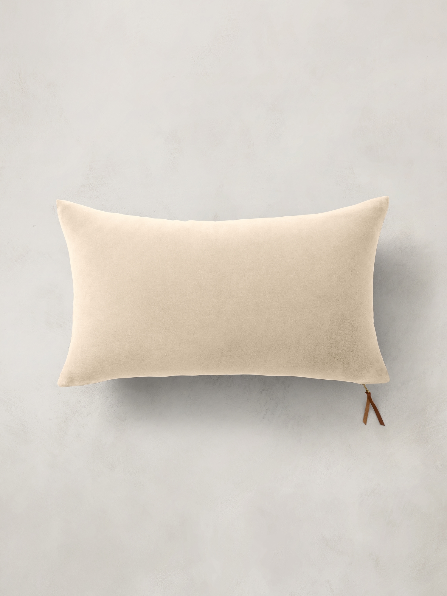 Everyday elegance, crafted of tonal cotton-velvet. Our elegant cotton-velvet pillow cover is expertly tailored for a refined finish and indulgent softness. Exposed brass zip closure with leather pull. OEKO-TEX® STANDARD 100 certification keeps you and your family safe from harmful substances (Certification number: 19.HIN.74318, Hohenstein HTTI). Pillow inserts are sold separately and are sized slightly larger than our pillow covers to create a fuller effect. Made in India. #541119