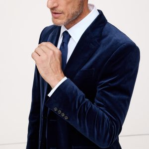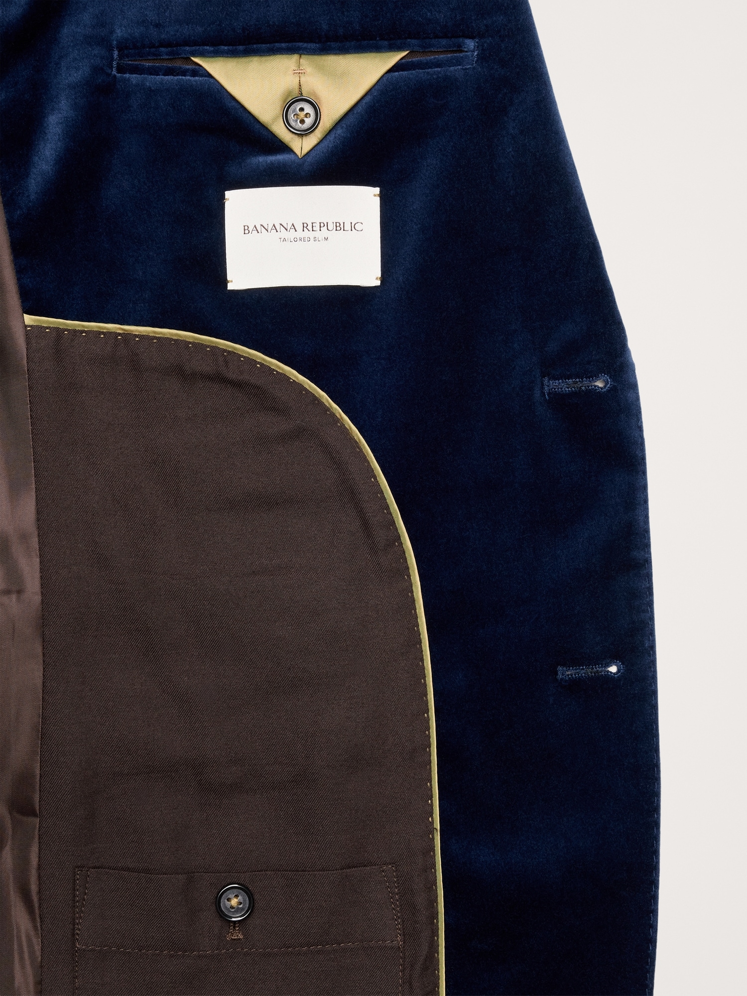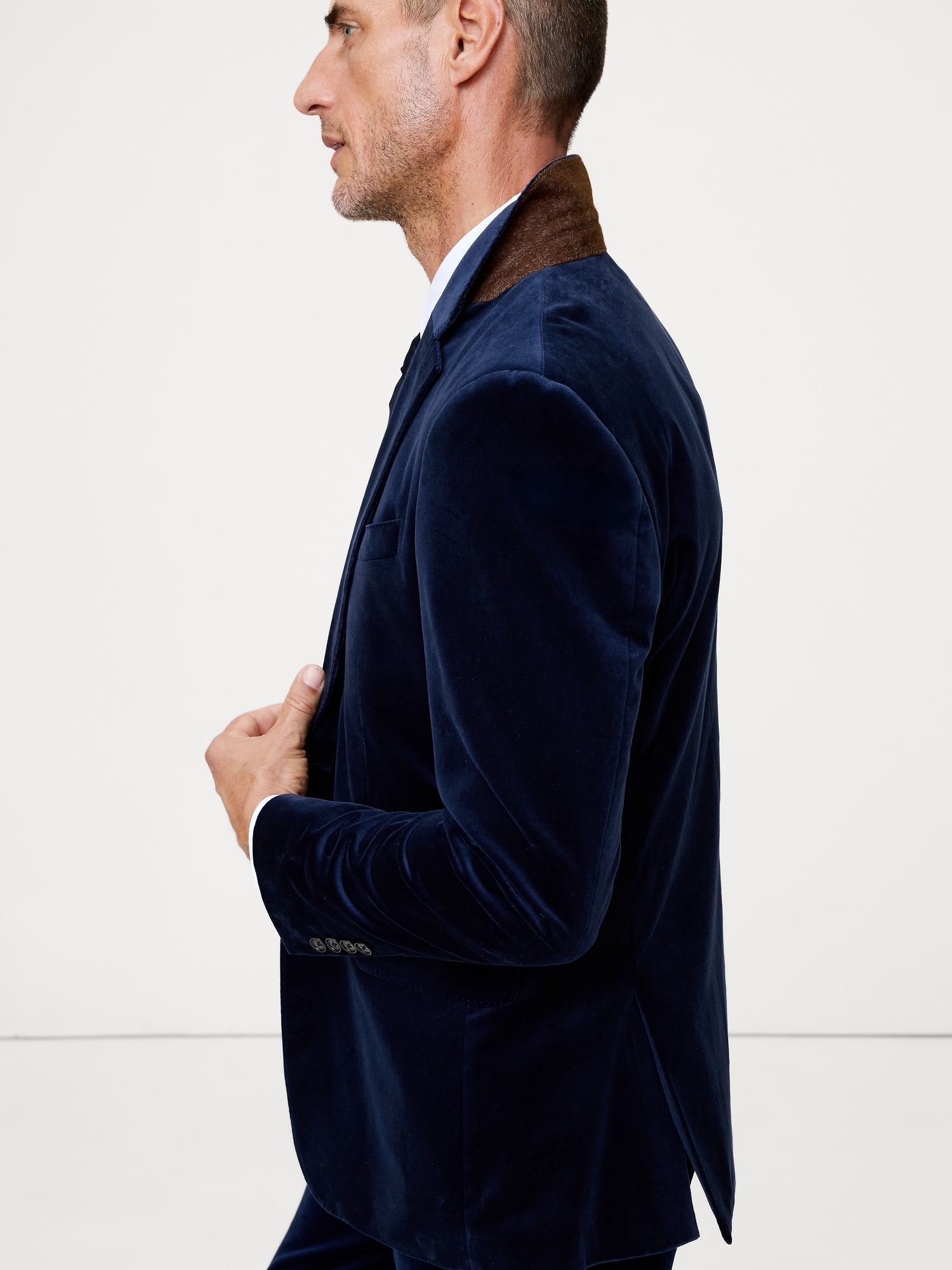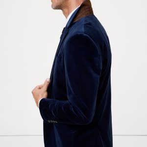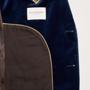 We selected a soft cotton velvet for this statement blazer, cutting it pile-up to enhance its luster and finished with an English-style roped shoulder, which adds a bit of structure and a more formal appearance.