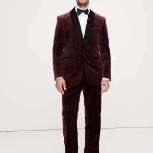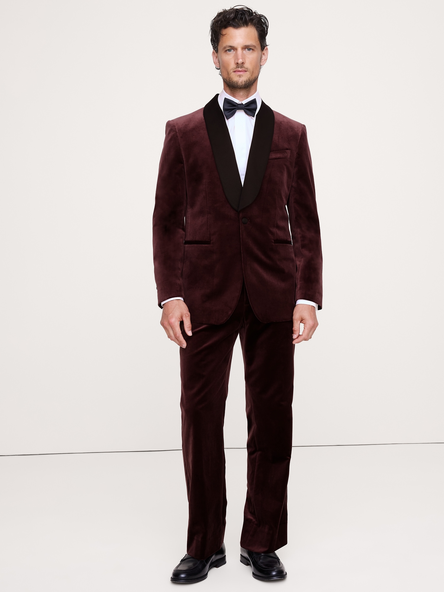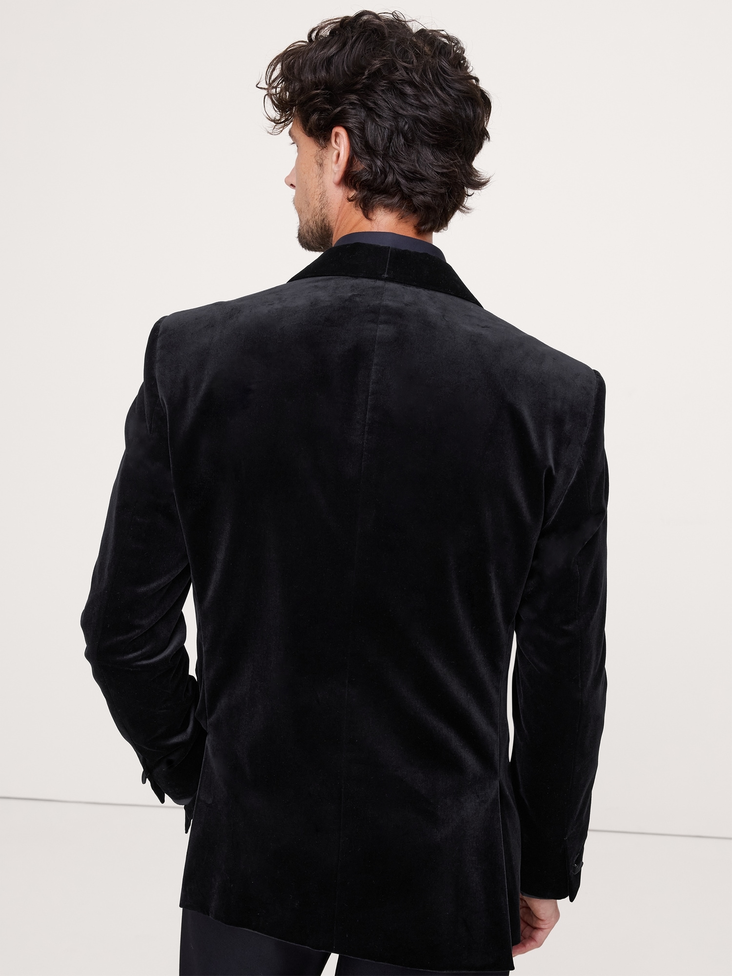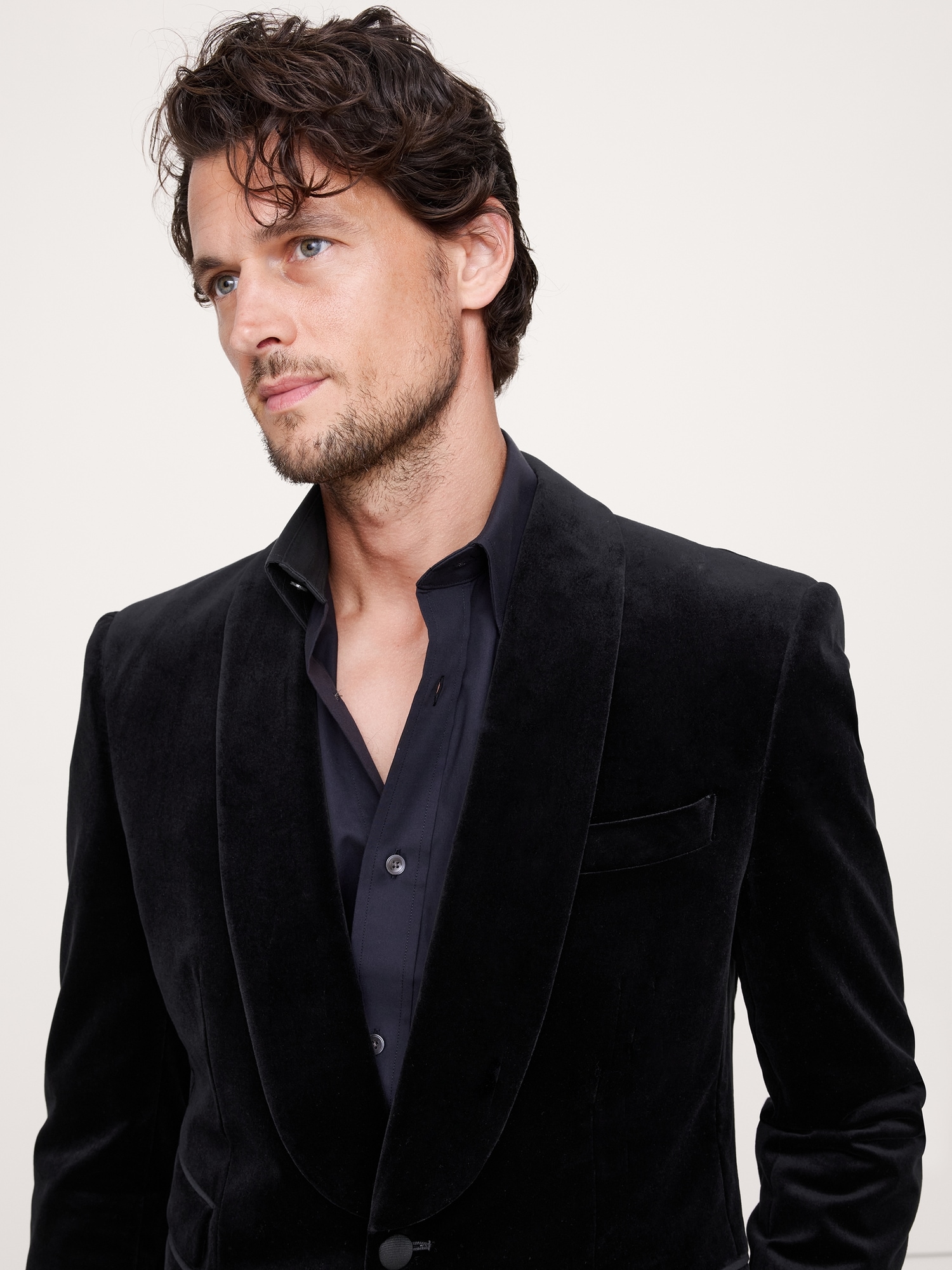 When the occasion calls for something truly special, reach for this velvet tuxedo jacket. We selected a beautiful cotton velvet, cutting the fabric pile-up to add to its luster. Finally, we added a roped shoulder and a shawl-lapel for a dressed up feel.