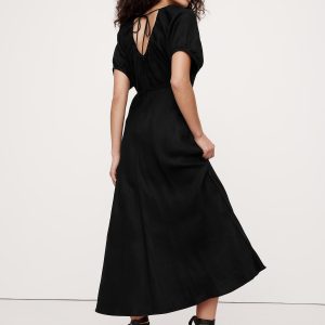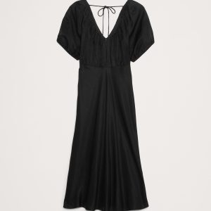 Viscose-Linen Ruched Maxi Dress