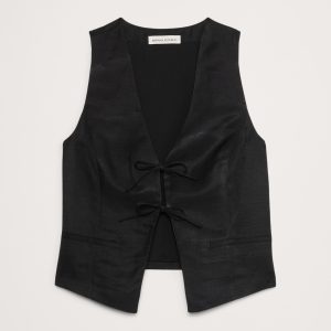 An easy tie-front vest, cut in a silky blend of viscose and linen—an ideal choice in hot, humid weather. Make it a set with the matching pant.